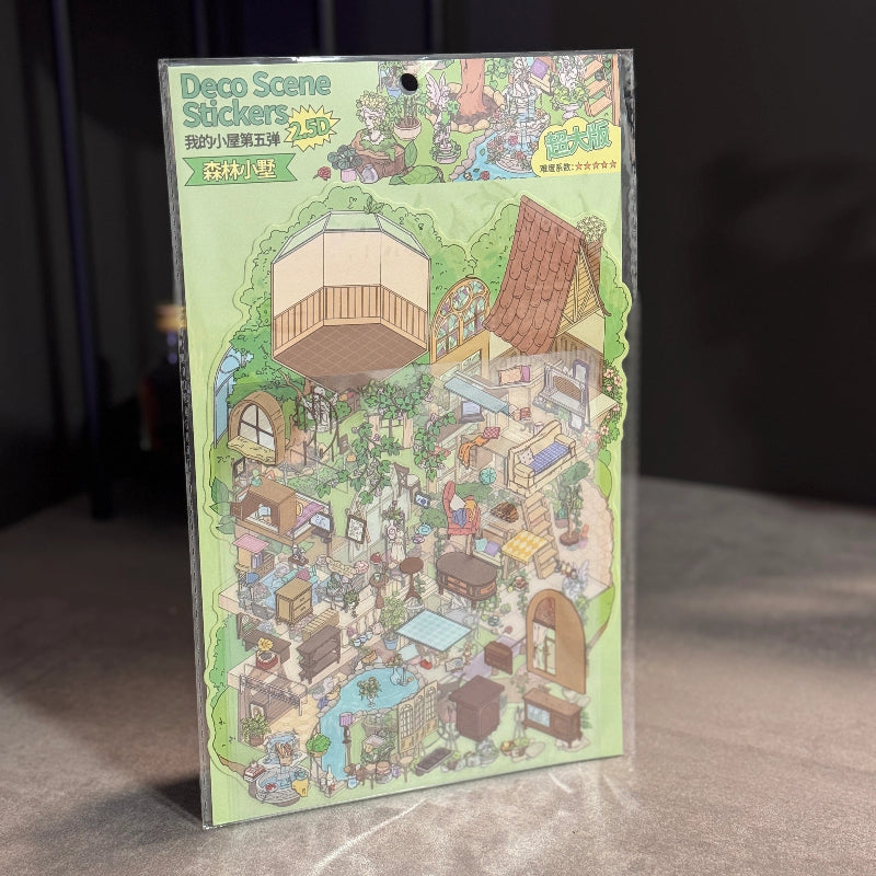 Detaljna scena s tri lista naljepnica. Velik format i dizajn u više razina omogućuju izradu bogatih kompozicija, a rješenje je prikazano na poleđini.